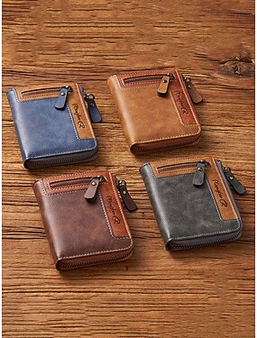 portafoglio da uomo in similpelle - grande capacità, vari colori, design con cerniera, elegante e pratico per l'uso quotidiano