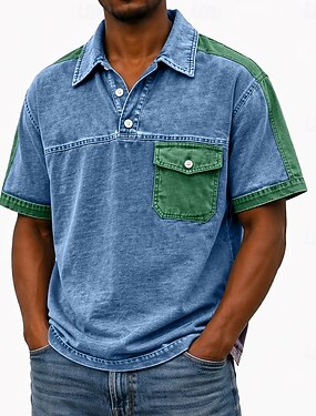 Per uomo Camicia lavata con acido Maglia da golf Casuale Lavoro Colletto Polo a Coste Manica Corta Moda Essenziale Tinta unica Blocco di colori Blocco di colore Bottoni Primavera & Estate Estate
