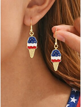 Set di orecchini da donna in lega patriottici, orecchini a cerchio pendenti con bandiera americana in vari stili per il 250° anniversario degli Stati Uniti, il giorno dell'indipendenza e per l'uso quotidiano.