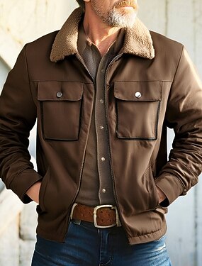 Per uomo Giacca in finta pelle scamosciata Giacca in Pile Giacca Sherpa Giacca in Camoscio Marrone Casuale Casual Quotidiano Giacca a Vento Patchwork Tasca Inverno Tinta unica Vintage Moda Colletto a