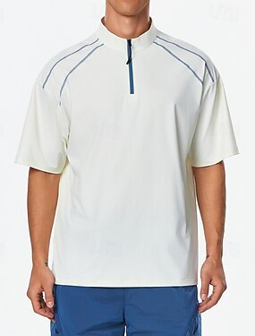 Per uomo Patchwork T-shirt da corsa Maglia da corsa Estate Primavera Zip a un quarto Manica Corta Asciugatura Rapida Compressione Traspirante Allenamento in Palestra Corsa Camminata Jogging Avorio