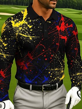 Per uomo Golf Inchiostro splash Polo Manica Lunga Magliette polo Bavero Abbigliamento Sportivo Casual Athleisure Abbigliamento quotidiano Stampa 3D Bottoni Primavera Autunno Inverno Nero Bianco