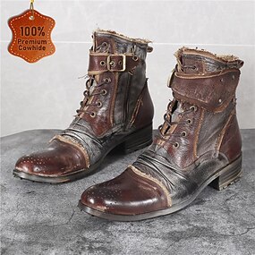 stivali da combattimento in pelle marrone vintage da uomo – stivaletti retrò in stile militare con lacci e cinturini con fibbia per la guida in moto e la moda casual