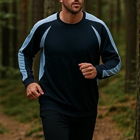 Per uomo Blocco di colori Camicia da allenamento Maglione da corsa Primavera & Autunno Manica Lunga Athleisure Asciugatura Rapida Traspirante Palestra Corsa Fitness Nero Bianco Blu scuro
