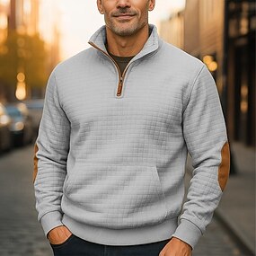 Per uomo Maglia Felpa a nido d'ape Felpa con zip corta Nero Blu marino Cachi Grigio scuro Grigio Colletto Mao Semplice Patchwork Testurizzato Sport & Outdoor Casuale Quotidiano Streetwear Cool