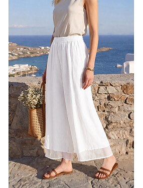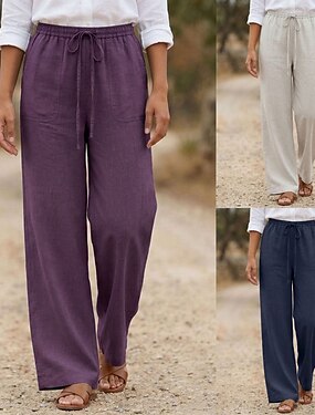 Per donna Cotone Lino Gamba larga Vacanza Essenziale Lunghezza intera Vita Alta Semplice Confortevole Inelastico Quotidiano Canapa bianca Blu marino Viola Estate Primavera Vestibilità comoda