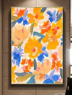 pittura a olio fatta a mano su tela decorazione artistica da parete originale pittura a fiori d'arancio pittura floreale astratta per la decorazione domestica con cornice allungata/senza cornice