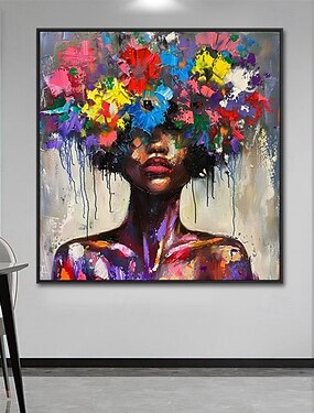 dipinto a olio fatto a mano su tela, decorazione artistica da parete, ritratto astratto moderno, ragazza africana, fata dei fiori, per arredamento d'interni, dipinto appeso su telaio teso/dipinto