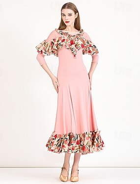 Balli da Sala Vestito Stampa floreale Pieghe Volant Per donna Feste Allenamento Performance Manica Lunga Spandex Poliestere