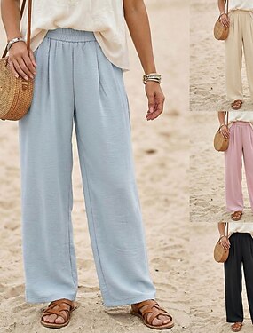 Per donna Pantaloni Pantaloni Estivi Pantaloni Larghi Pantaloni da Spiaggia Vacanza Moda Essenziale Lunghezza intera Vita media Semplice Coulisse Tasca Comodità All'aperto Micro-elastico Quotidiano