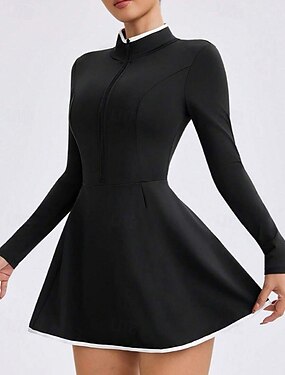 Per donna Colore a Contrasto Abito da tennis con pantaloncini Abito sportivo Manica Lunga Cerniera Frontale Elastico Traspirante Tennis Golf Corsa Collo Alto Vestito Nero Abbigliamento da tennis