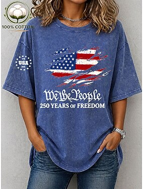 Giorno dell'Indipendenza Americana Per donna Maglietta Camicia di cotone Top lavati effetto vintage Stampato Grafico Bandiera Bandiera Americana Elegante Essenziale Classico Manica Corta Girocollo