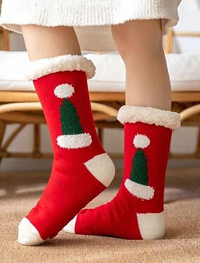 calzini natalizi da donna, calzini caldi e accoglienti in pile corallo, calzini invernali spessi e morbidi, coppia ®alo coordinato per la famiglia, calzini antiscivolo per pavimenti interni