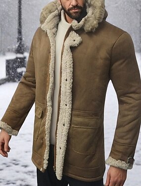 Per uomo Giacca invernale Giacca in pile Pelliccia sintetica Giornaliero Da mare Tenere al caldo Tasche Vello Autunno inverno Tinta unica Di tendenza Streetwear Bavero Lungo Bianco Marrone Grigio