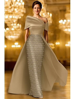 Abito da ballo a linea A di lunghezza fino al pavimento Abito da festa Abito da cocktail Abito per la madre della sposa senza maniche maniche corte spalle scoperte elegante vintage lussuoso formale