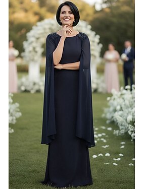 Abito lunghezza fino al pavimento abito per invitata a un matrimonio abiti formali abito da sera abito per madre della sposa maniche 3/4 scollo tondo elegante invitata a un matrimonio con colore