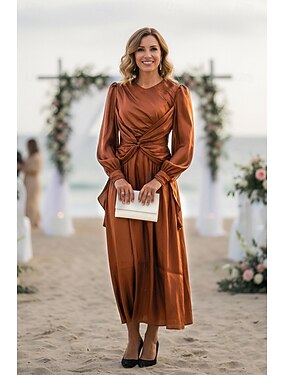 Due Pezzi Abito Aderente Colonna Lunghezza Tè Abito da Festa Abito Cocktail Abito da Sposa per Invitate Abito Madre della Sposa Manica Lunga Colletto Camicia Elegante Festa Lussuosa con Bottoni Color