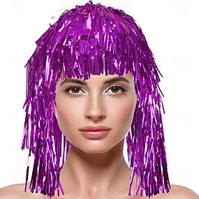 Parrucca di Carnevale Biondo Viola Verde Liscio Lunghezza media Parrucca sintetica da festival Martedì grasso Parata Capelli per costumi da cosplay per Da donna