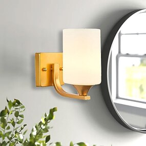 applique da parete decorativa a led, applique moderne con paralume in vetro bianco latte cilindro, installazione su o giù, lampada da parete per soggiorno camera da letto e corridoio