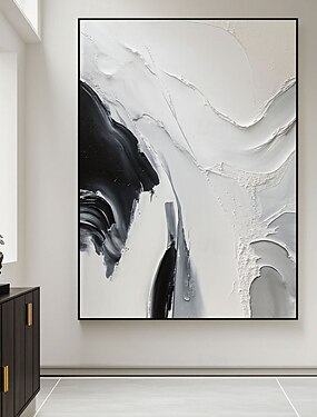 arte astratta in bianco e nero fatta a mano, arte murale nera con texture, dipinto in bianco e nero, arte murale in bianco e nero, arte murale 3D con texture in bianco e nero