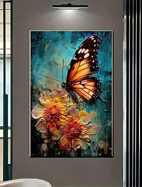 Moderna stampa artistica su tela con fiori e farfalle, decorazione murale senza cornice, adatta per soggiorni e camere da letto.