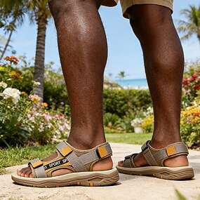 sandali da uomo in similpelle color cuoio, leggeri e comodi per le vacanze estive in spiaggia e le esplorazioni all'aria aperta