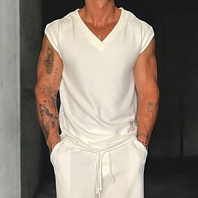 Per uomo Maglia Henley Maglietta smanicata Canotta in lino Maglietta senza maniche Senza Maniche Henley Estate Semplice Moda Designer Stile Boho Bottoni Vacanza Casuale Uscire Nero Bianco Rosa