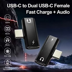 Adattatore da USB-C a doppia USB-C, adattatore 2 in 1 USB-C per cuffie e caricabatterie con chip DAC audio ad alta risoluzione, splitter di ricarica rapida PD compatibile con iPhone 17 Pro Max, iPad,