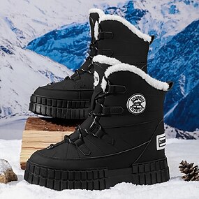 stivali invernali impermeabili neri da uomo con fodera in pelliccia e suola di trazione: calzature resistenti e isolanti per la neve, l'escursionismo e le avventure invernali