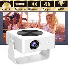 Mini proiettore nativo 1080p con Wi-Fi 6 e Bluetooth, proiettore Android intelligente con supporto 4K, proiettore cinematografico portatile per home theater &supporto per esterni girevole a 180 gradi
