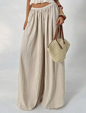 Per donna Pantaloni Pantaloni casual Pantaloni Estivi Pantaloni da Spiaggia Vacanza Moda Casual Quotidiano Lunghezza intera Misura del girovita medio Tinta unica Semplice Gamba larga Fascia Elastica