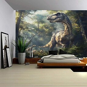 un arazzo con dinosauri della foresta, grande arazzo, decorazione murale, sfondo fotografico, coperta, tenda, casa, camera da letto, soggiorno, decorazione