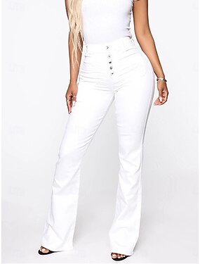 Per donna A zampa Pantaloni Di tendenza Streetwear Lunghezza intera Vita alta Liscio Tasche Sollevamento del culo arricciato Taglio alto Comfort Traspirabilità Morbido Media elasticità Da mare Strada