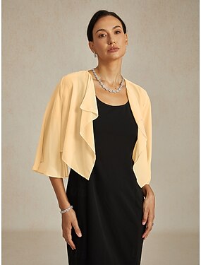 Per donna Top fluidi Top in chiffon Tinta unica Elegante Manica 3/4 Asimmetrico Top corti Ospite di nozze Champagne Estate Primavera Autunno