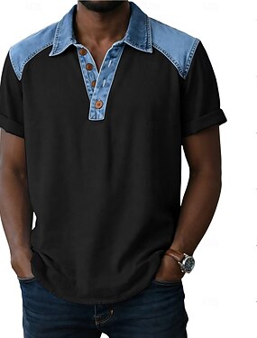 Per uomo Polo Camicia di Jeans Casuale Lavoro Bavero Manica Corta Essenziale Moderno Blocco di colori Patchwork Bottoni Primavera & Estate Blu Nero Bianco Blu marino Marrone Verde Polo