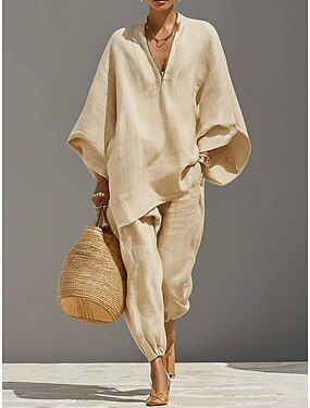 Per donna Set di biancheria in cotone Manica Lunga Manica a Campana Scollo a V Tinta unica Bohemien Vacanza Moda Casuale Quotidiano Blu Grigio scuro Marrone Primavera & Estate
