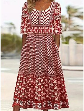 Per donna Abito Midi Abito Estivo Vacanza Casual Boho Quotidiano Spiaggia Vestibilità regolare Floreale Mezza Manica Girocollo Blu Rosso Blu scuro Beige Estate Primavera