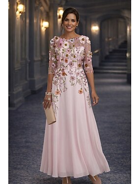 Linea ad A Abito Lunghezza alla caviglia Lunghezza Tè Abito da invitata a nozze Abito da cerimonia per signora Manica Corta Girocollo Scollo a V Elegante Pastello Formale Ospite di nozze Semi-Formale