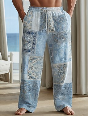 Per uomo Blocco di colori Patchwork Floreale intricato Pantaloni Pantaloni casual Pantaloni Larghi Misura del girovita medio Boho Casa All'aperto Vacanza Coulisse elastica in vita Pantaloni tipo lino