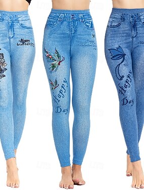 Per donna Leggings Jeans strappati Vacanza Vintage Casual Lunghezza intera Vita Alta Floreale Farfalla Fascia Elastica Stampa Morbido Confortevole Elasticizzato All'aperto Streetwear Blu azzurro cielo