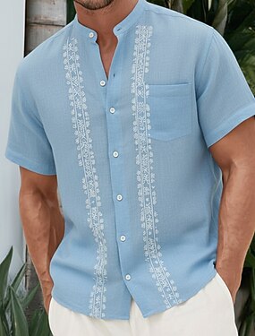 Per uomo Camicia Camicia con bottoni Manica corta Vintage Informale Tribale Da mare Giornaliero Estate Primavera A fascia collare del nonno Stampa Verde Cachi Beige