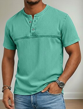 Per uomo Maglia Henley Camicia 100% cotone lavaggio acido Manica Corta Semplice Retrò Vintage Casual Stile Vintage Tinto in capo Jeans Henley Casuale Estate Primavera Tutte le stagioni Blu Viola Verde