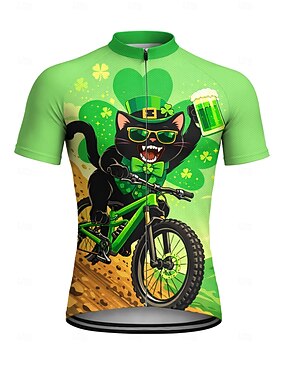 Maglietta da uomo St Patrick Jersey Cycling Jersey Downhill Jersey Cat Quadrifoglio Oktoberfest Birra Maglietta a maniche corte con 3 tasche posteriori UV resistente asciugatura rapida con tasche zip