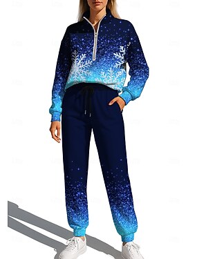 Per donna Maglia Tuta da Ginnastica Tuta da Allenamento Coulisse Cerniera Gradiente di Colore Giacca e Pantaloni da Tuta Set di Abbigliamento Sportivo Primavera Autunno Inverno Blu marino scuro
