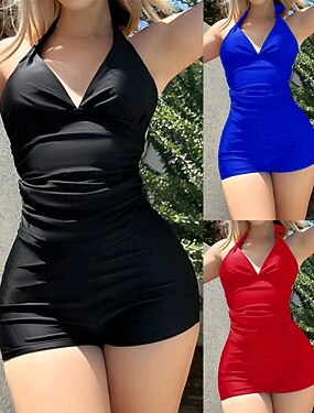 Per donna Costume da bagno One Piece Costume da bagno con scollo all'americana Tinta unita Gamba corta Asciugatura Rapida Elastico Senza Maniche Costume da Bagno Costume da bagno Surf Spiaggia Nuoto