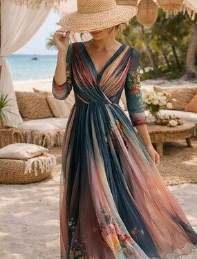 Per donna Abito lungo maxi Abito Lungo Maxi Abito Abito da Spiaggia Abito Floreale Abito Boho Elegante Moda Moderno Quotidiano All'aperto Vacanza Vestibilità regolare Floreale Manica Corta Scollo a V