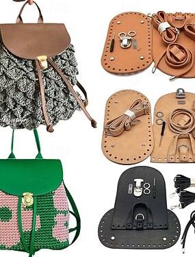 Kit fai da te per zaino in pelle intrecciata da 7 pezzi - set con fondo e patta per borsa in similpelle lavorata a maglia, con uncinetto e accessori - per adulti &adolescenti - perfetti per i