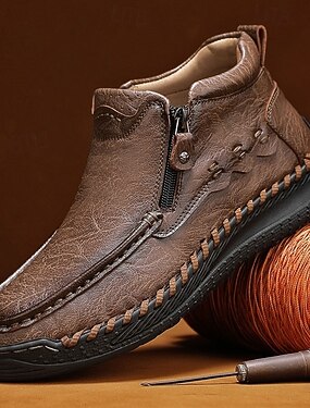 Mocassini casual da uomo marroni con cerniera laterale, suola antiscivolo cucita a mano, comode calzature da tutti i giorni per lavoro, guida e gite del fine settimana