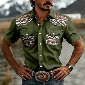 Per uomo Motivo Geometrico Etnico Camicia Western Camicie da lavoro Camicia da cowboy Manica Corta Western Vintage Retrò Casuale All'aperto Abbigliamento da lavoro Estate Primavera Collo ripiegato