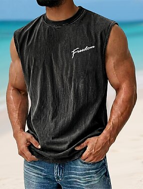 Per uomo FREEDOM Maglietta smanicata T-shirt con lavaggio acido Canottiera Senza Maniche maglietta Stampa Grafica Girocollo Camicia Vacanza Tropicale Moda Quotidiano Vacanza Spiagge Nero Marrone Verde